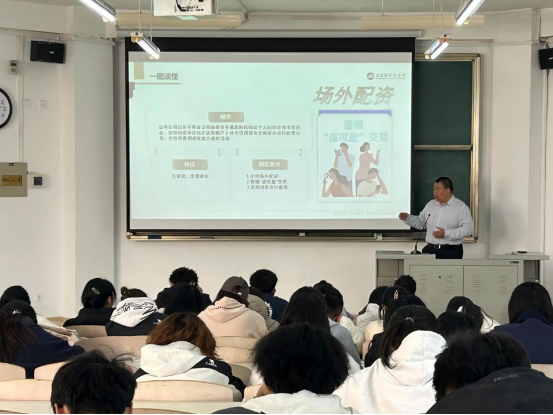 本次讲座紧扣大学生对金融活动充满好奇但风险辨别能力较弱的特点,量身定制宣讲内容。中邮证券山东区业务讲师关浩担任主讲人,以校园周边及同龄人遭遇的真实案例为切入点,生动拆解“荐股群杀猪盘”“高收益期货对赌”“虚拟币传销” 等典型骗局,用通俗易懂的语言揭示非法金融活动利用人性贪婪、信息不对称设局的核心套路,让在场师生深刻认识到非法证券期货活动并非遥不可及,而是潜藏在日常生活中的风险隐患。